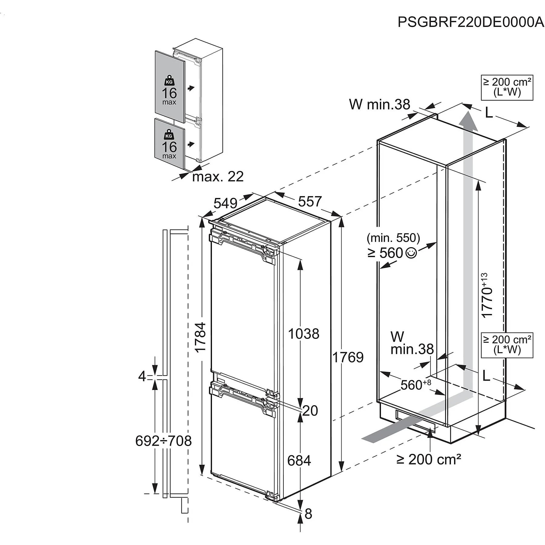 | Nischenmaße | H 1780 mm; B 560 mm; T 550 mm |