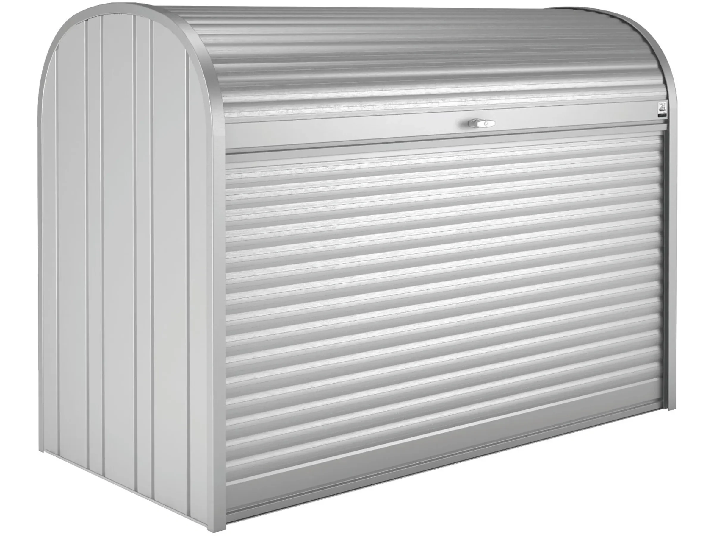 - Witterungsbeständig: Seiten- und Rückwände aus feuerverzinktem, polyamid-einbrennlackiertem Profistahl; Rollläden aus beschichtetem Aluminium.