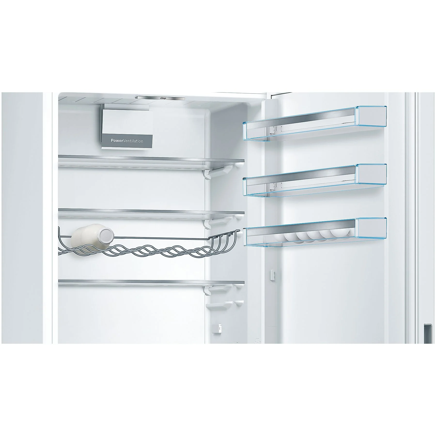 - Durchdachte Aufteilung 5 Sicherheitsglas-Ablagen (2 verstellbar), 2 Schubladen, 4 Türfächer plus integrierter Flaschenhalter.
