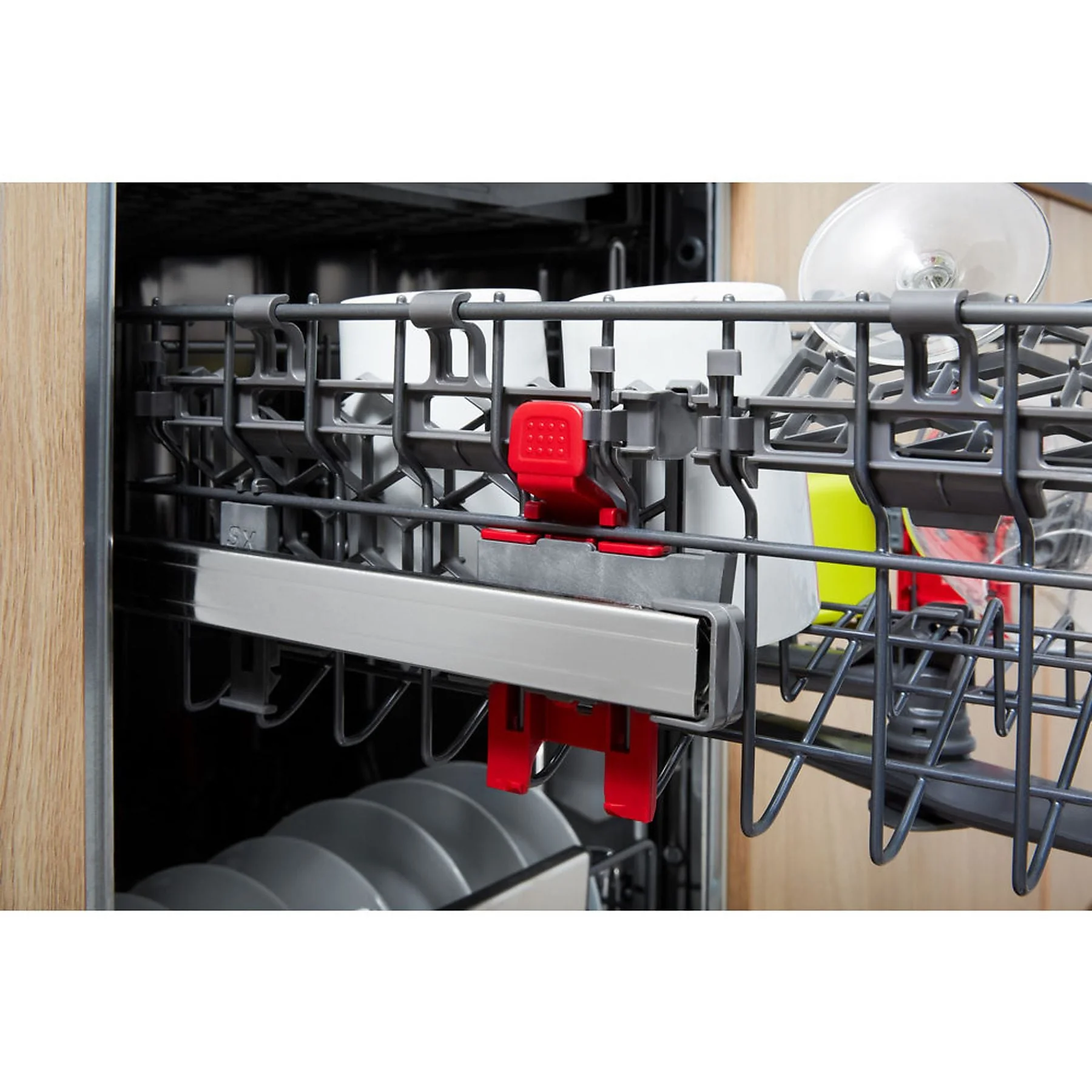 - PowerClean Hochdruckdüsen: Gezielt platzierte Düsen an der Rückwand lösen hartnäckige Verschmutzungen; großvolumiges Kochgeschirr kann dafür sogar hochkant einsortiert werden.