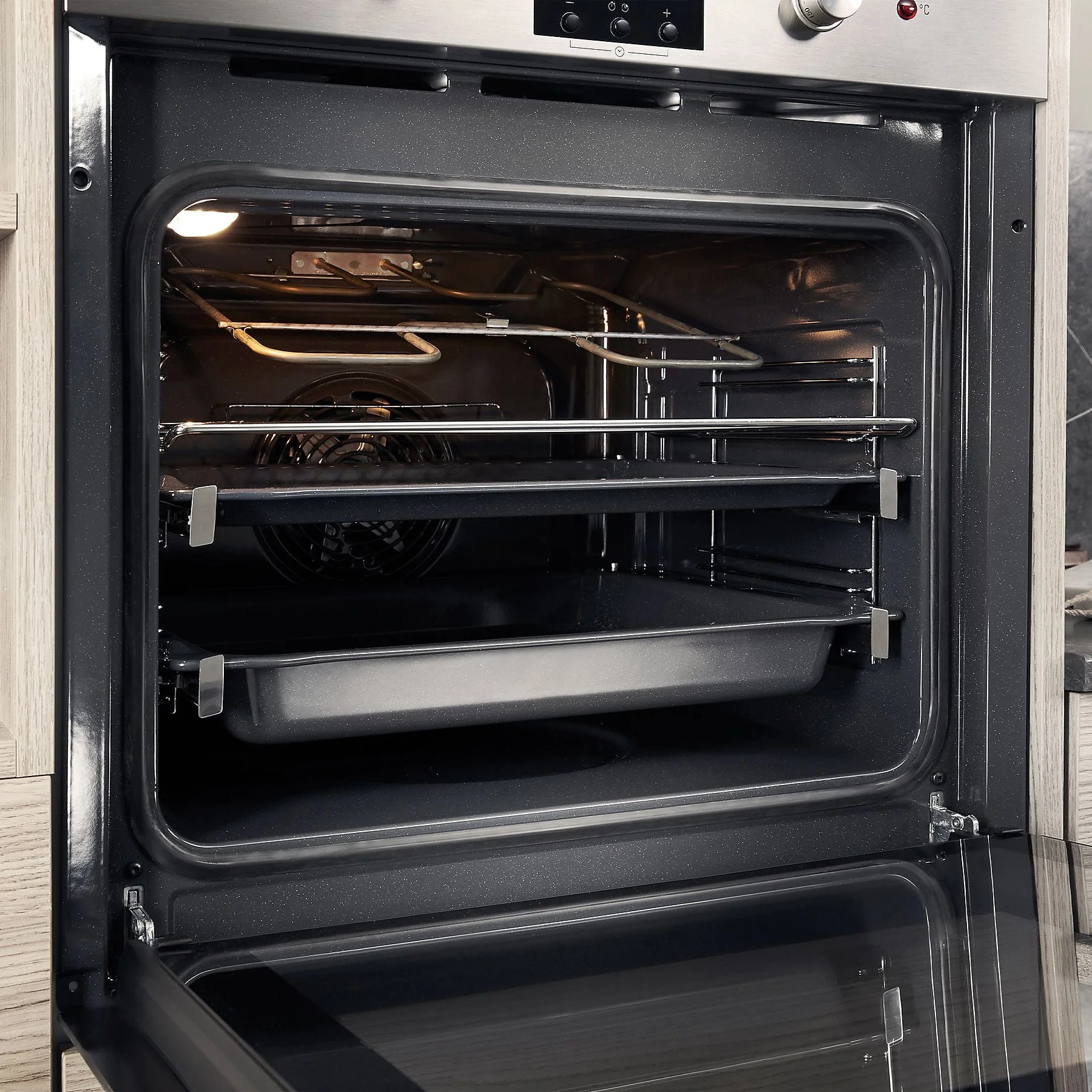 - 2‑fach Teilauszug: Erleichtert das Bestücken und Entnehmen von Blechen auf zwei Ebenen.