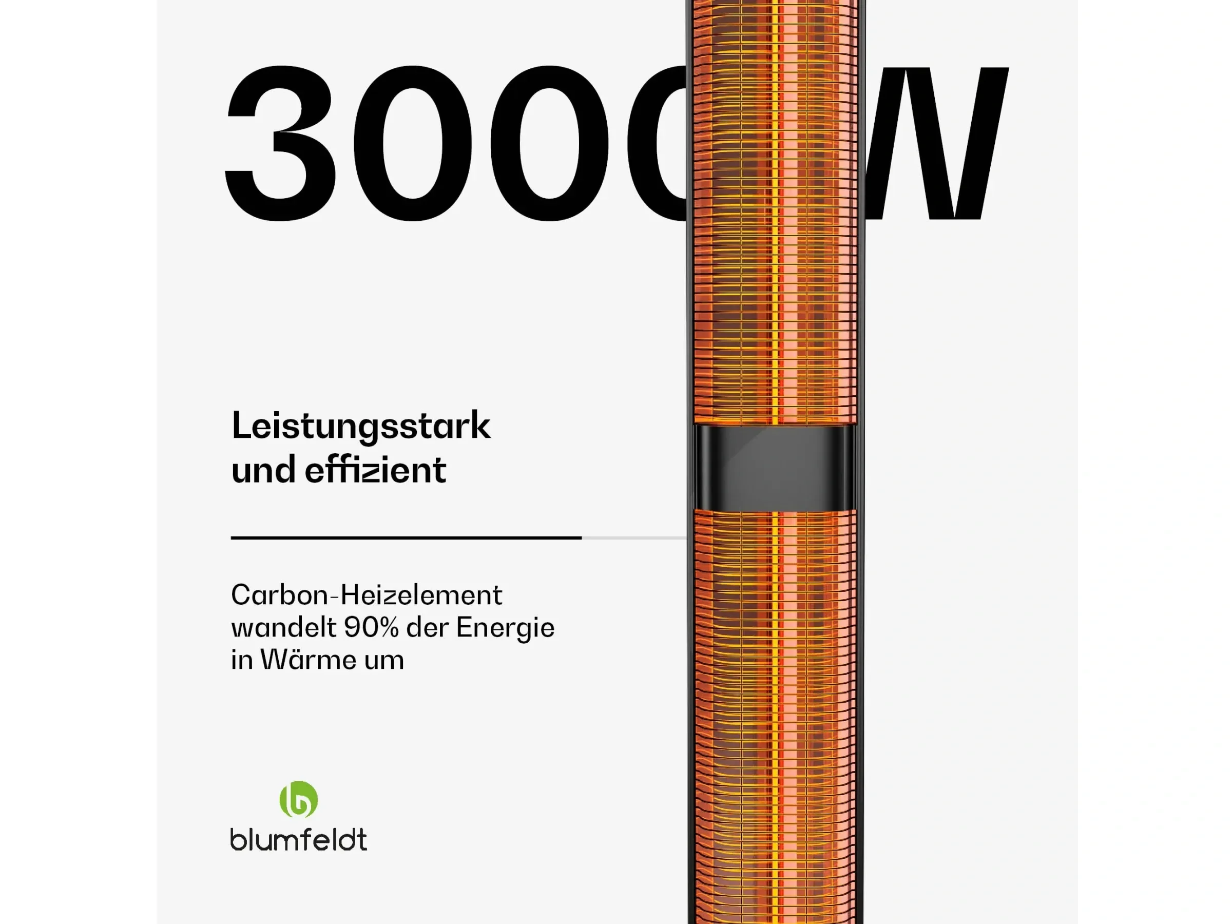 - Leistungsstark mit 3.000 W: schnelle, gleichmäßige Wärmeverteilung für kühle Abende.