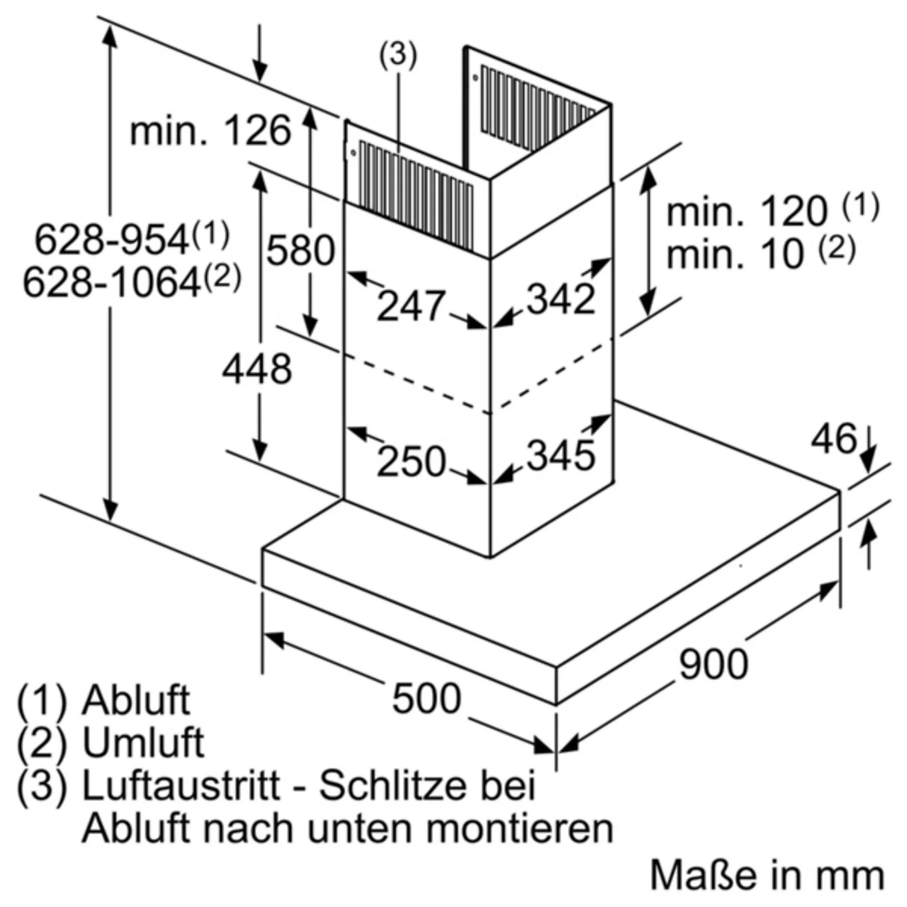 | Maße Abluft (HxBxT) | 628–954 × 898 × 500 mm |