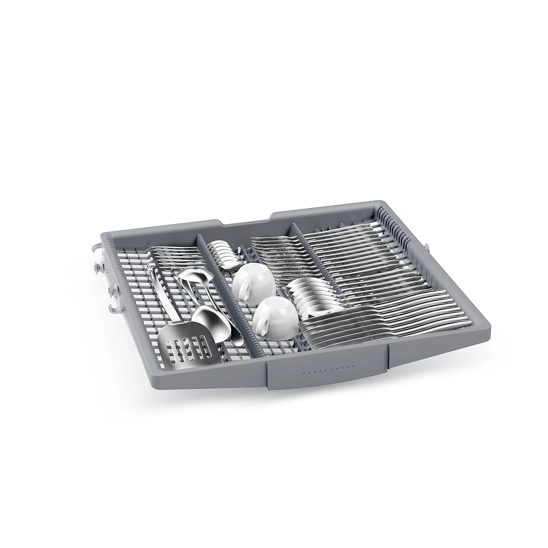 - Flexible Beladung: VarioFlex-Korbsystem, VarioSchublade, umklappbare Stachelreihen (Ober- und Unterkorb) und Tassenablage.