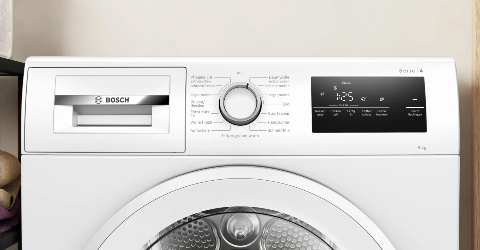 - Wunsch-Trocknungsgrad: Wäsche bügelfeucht, schranktrocken oder extratrocken – passend zu deinem Bedarf.