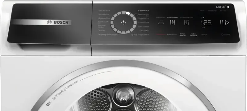 | Technologien | AutoDry, Smart Dry (automatische Programmauswahl), selbstreinigender Kondensator |
