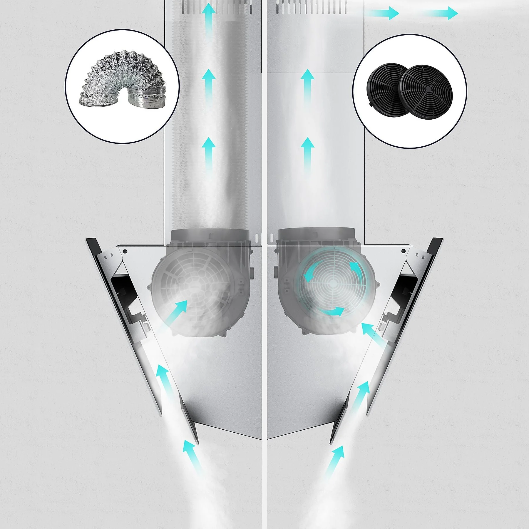- Flexibler Betrieb: Umluft mit Aktivkohlefiltern oder Abluftbetrieb, je nach Küchensituation.