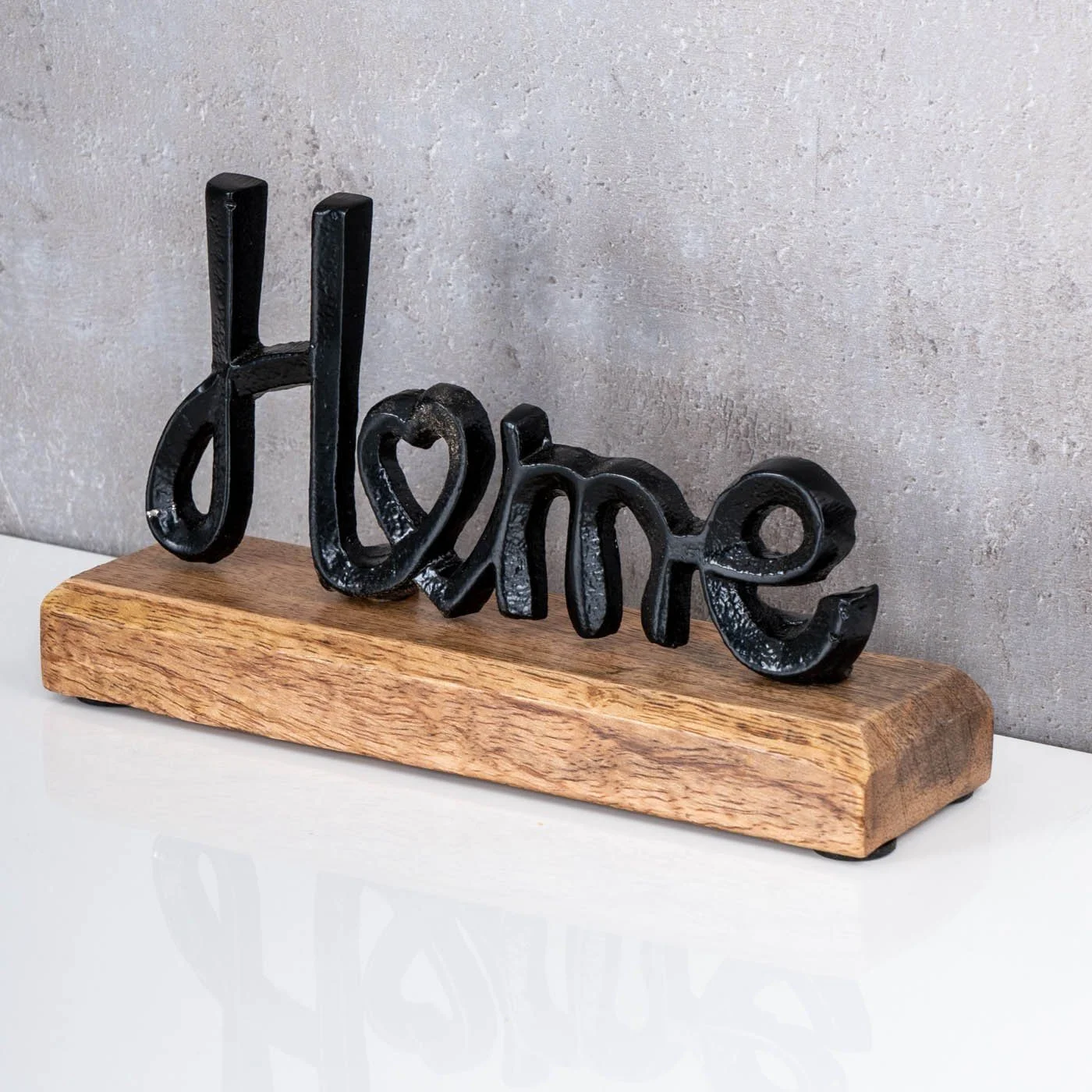 | Modell | Schriftzug „Home“ auf Mangoholzsockel |