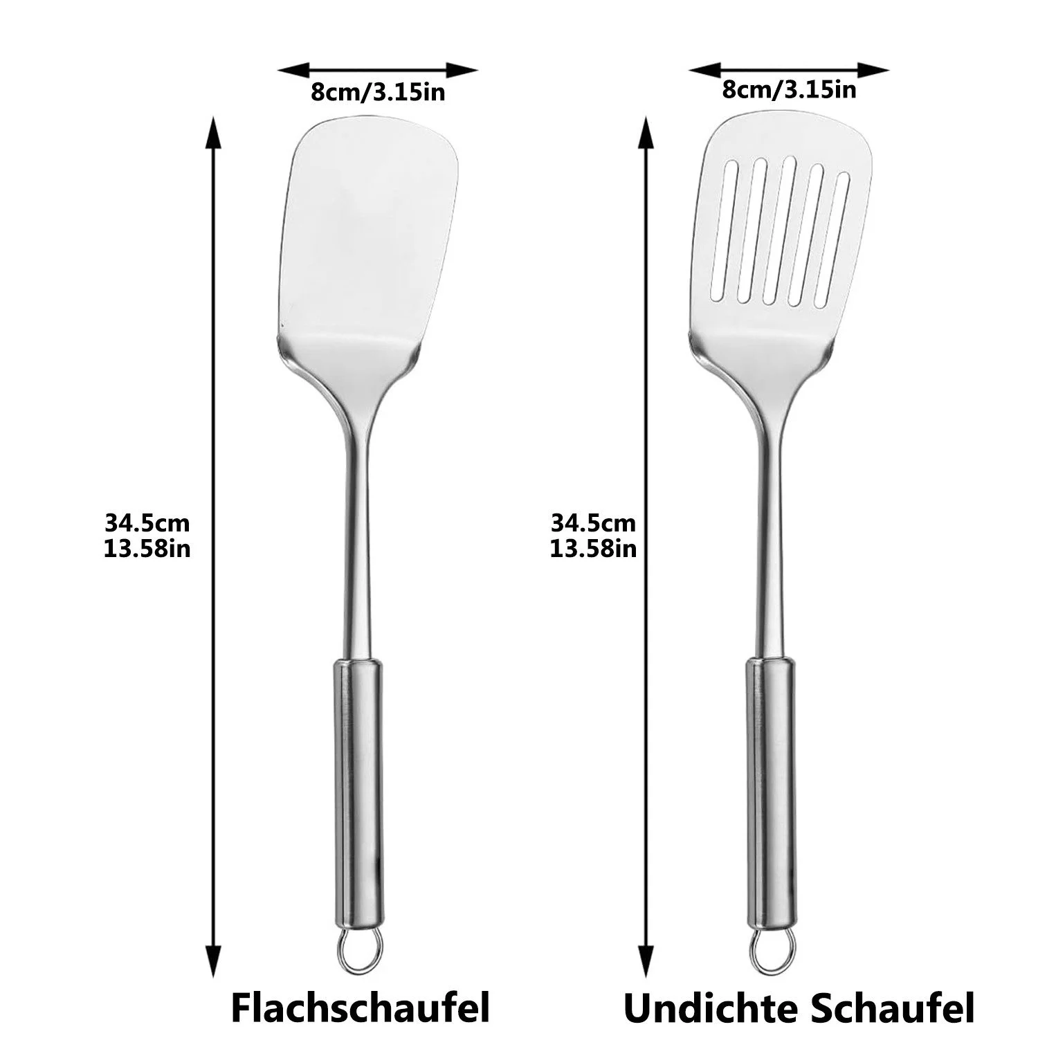 Dieses 2-teilige Kochbesteckset aus hochwertigem, rostfreiem Edelstahl ist die perfekte Ergänzung für die moderne Küche. Beide Spatel – ein klassischer Flachspatel und ein Schlitzspatel – sind stabil verarbeitet und eignen sich ideal zum Wenden, Rühren und Servieren verschiedener Speisen. Das langlebige Edelstahlmaterial setzt auf Stärke, Korrosionsbeständigkeit und eine hygienische Oberfläche.