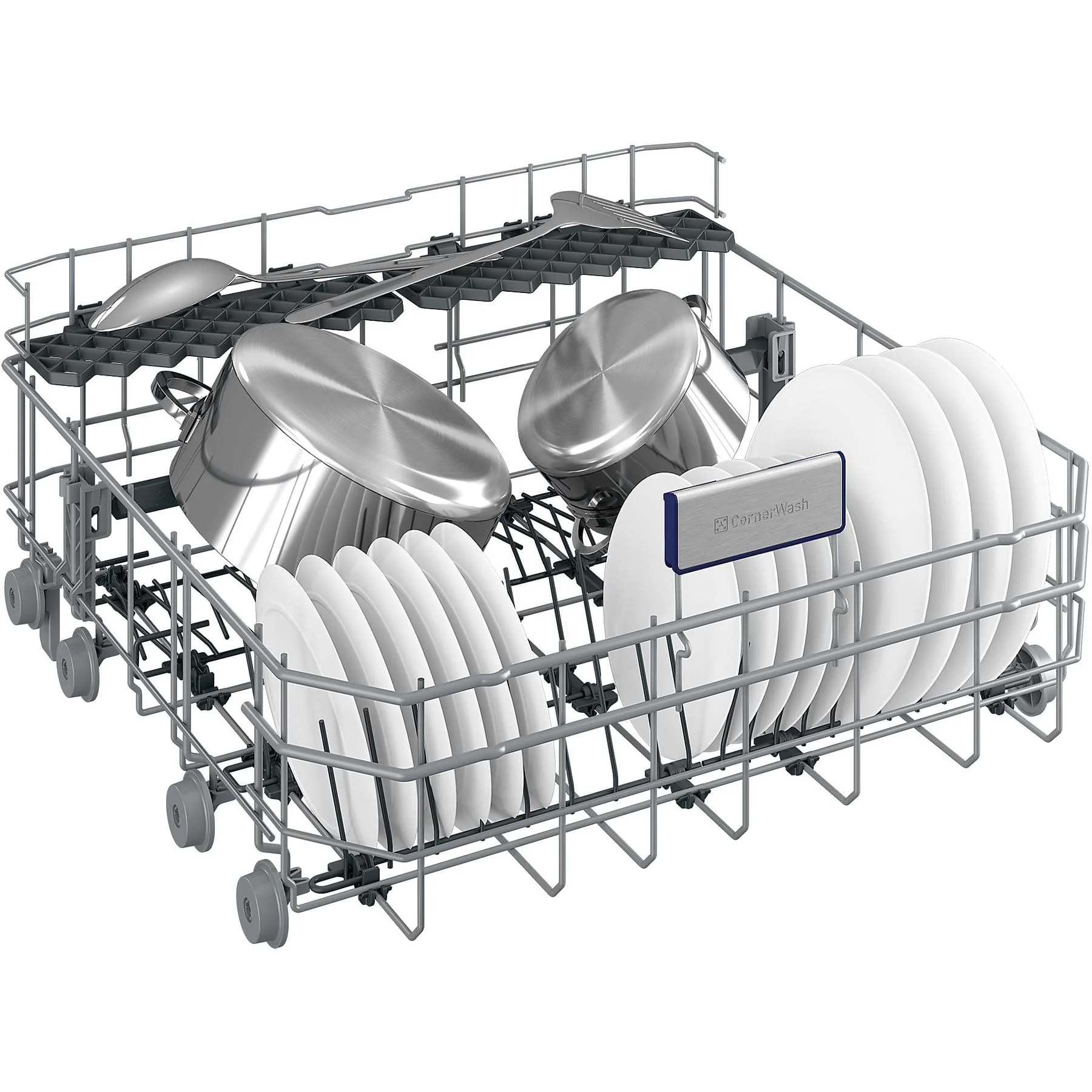- Flexible Beladung: Oberkorb 3-fach höhenverstellbar (auch beladen), umklappbare Tellerreihen, herausnehmbare Besteckschublade plus VarioSlide-Besteckkorb.