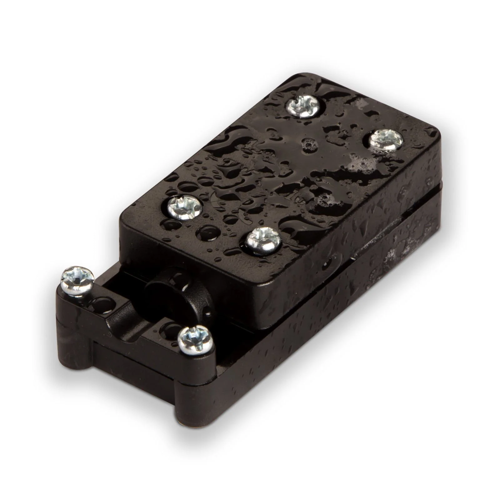 Im Inneren befindet sich eine bereits vormontierte Lüsterklemme – einfach Kabel einführen, fixieren und sicher verbinden. Kompakt, robust und schnell installiert.