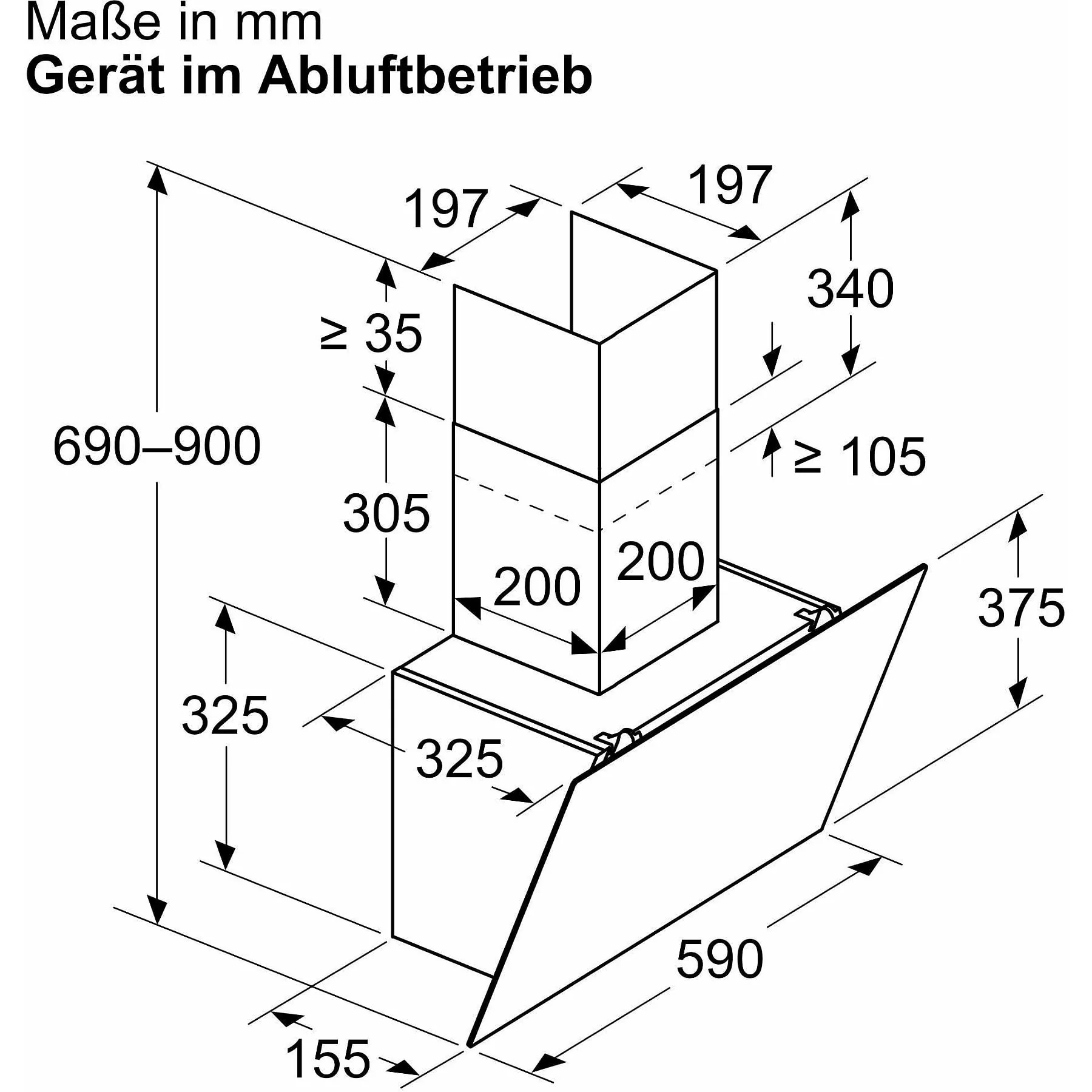 | Abmessungen Abluft (H x B x T) | 690–900 x 590 x 325 mm |