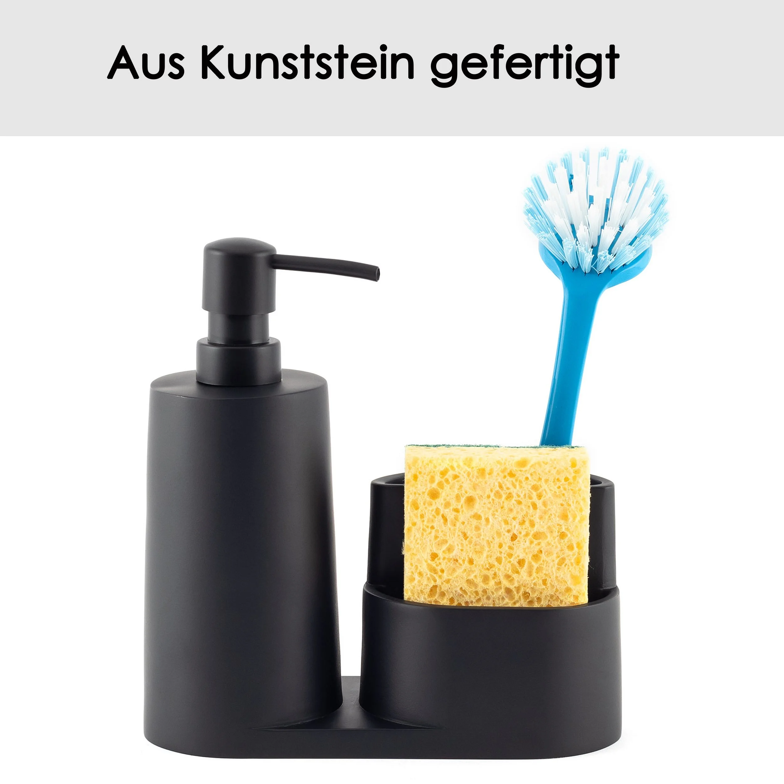 1 × Spülbeckenorganizer aus Kunststein 1 × integrierter Spülmittelspender (schwarz) |